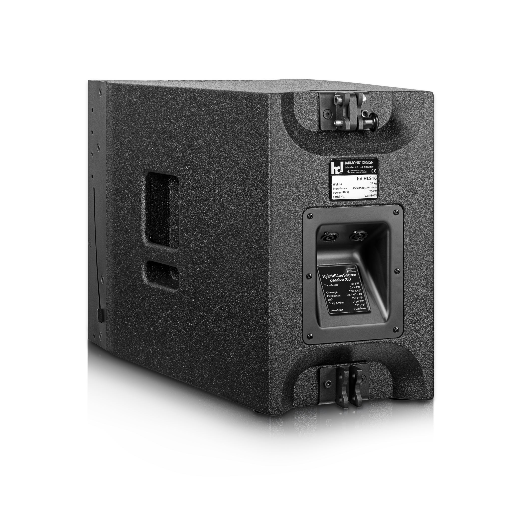 Het innovatieve en unieke ontwerp van de behuizing zorgt voor een enorme efficiëntie, compacte afmetingen en een onvervormde maximale geluidsdruk van meer dan 137 dB. Het HD HLS16 HybridLineSource-systeem stelt nieuwe normen in alle disciplines in de dubbele 8“-klasse. Door de LineSource-eenheid te gebruiken met meerdere krachtige hoogfrequente drivers, wordt de vervorming tot een absoluut minimum herleid en zijn er enorme reserves beschikbaar voor het klinken van grote afstanden. Het speciale SuperVentedDesign maakt stand-alone applicaties mogelijk zonder extra subwoofer-systemen, een dynamische en breedbandweergave tot 70 Hz in full-range modus.